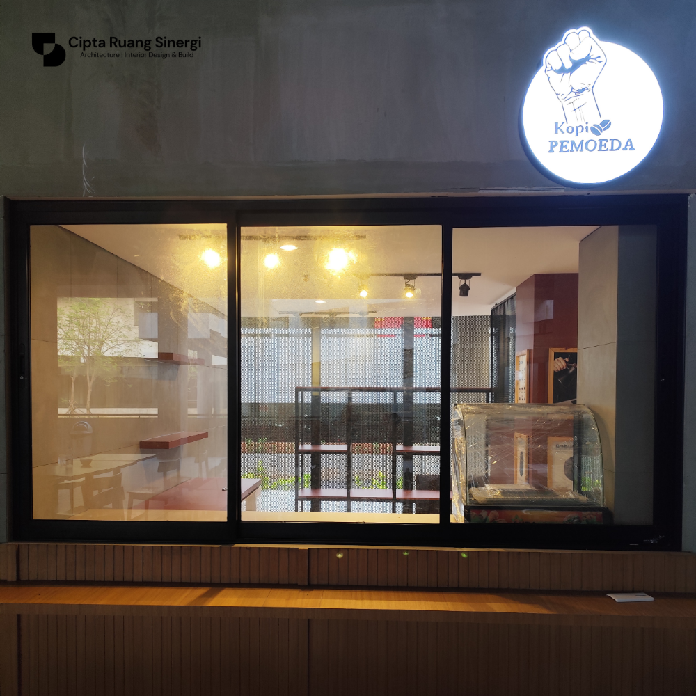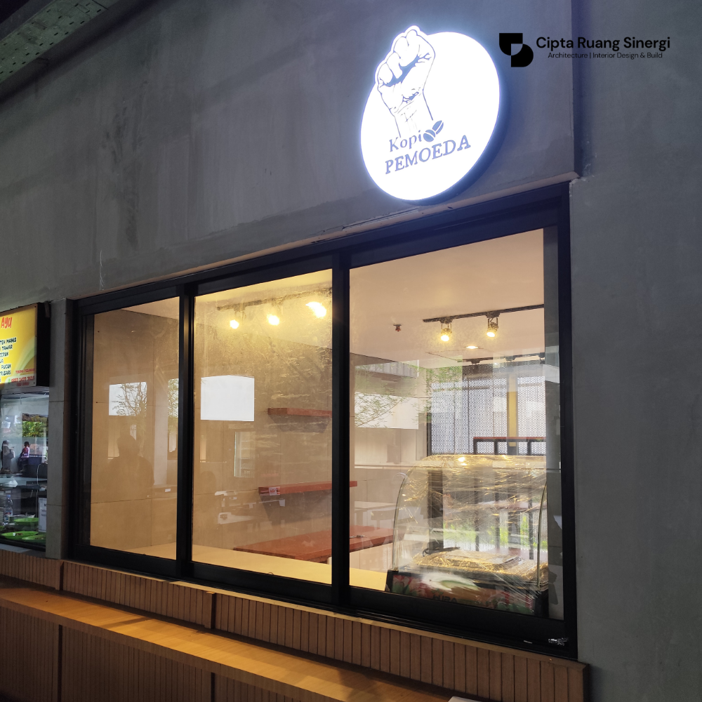 Menyusun interior yang mendukung fungsi operasional sekaligus tampilan visual yang menarik dari luar.